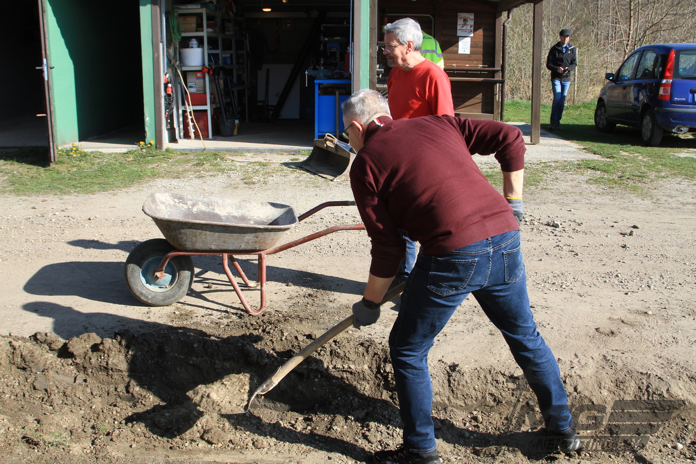 Der Spezialtrupp hob Erdreich im Zugangsbereich zur Hütte aus um Pflastersteine zu verlegen. Damit dürfte der morastige Zugang bei Regen der Vergangenheit angehören.