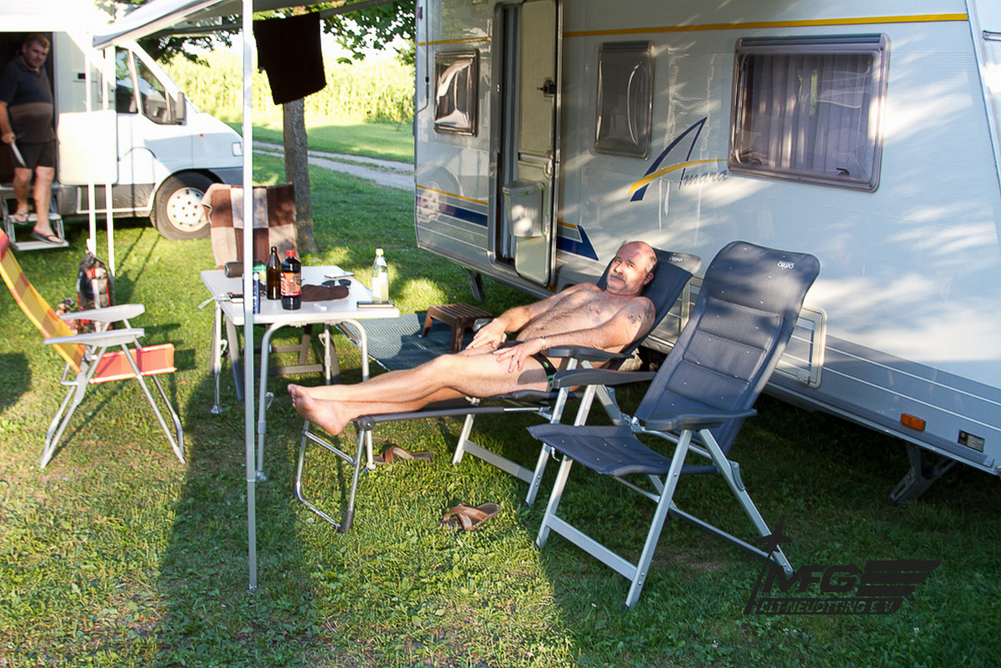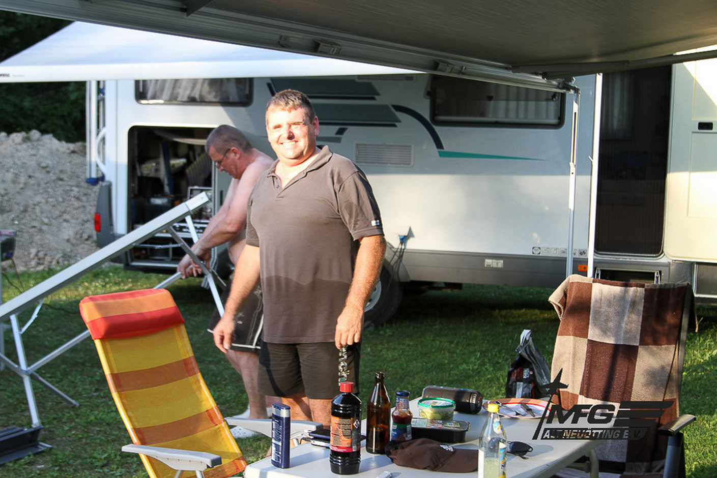 Der Grill wurde mit allerlei Köstlichkeiten gefüttert, die mitgebrachten Salate und das eine oder andere Bierchen nahmen schnell den Platz auf den Tischen ein. Das anstehende Gewitter zog, wie so oft schon, an uns vorbei und der wirklich heftige Wetterumschwung kam spät genug.