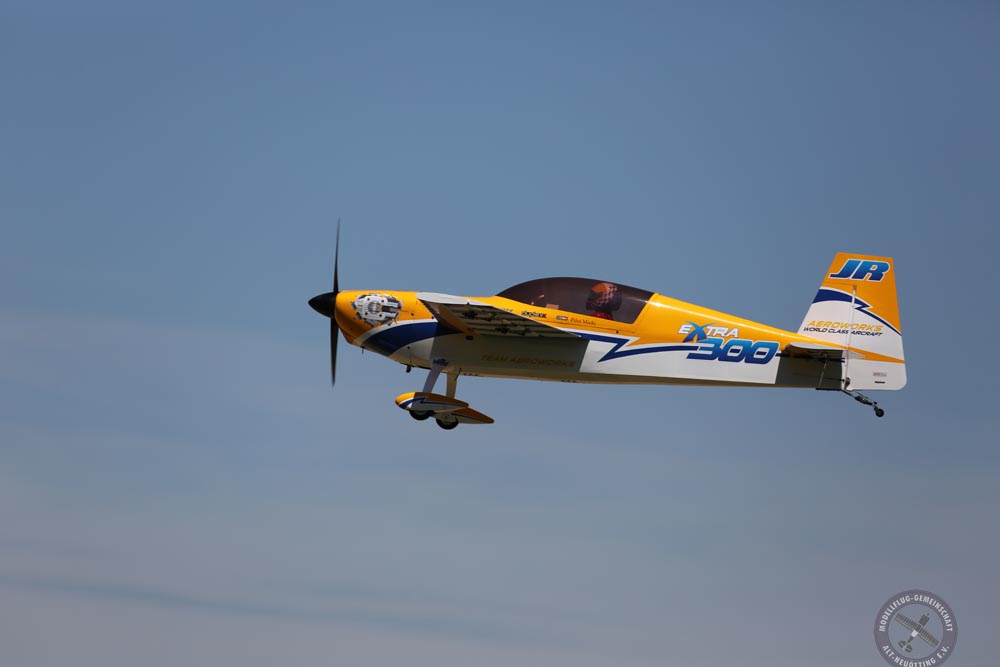 Der offizielle Teil des Flugtages begann wie jedes Jahr mit einem Jugendlichen Teilnehmer. Michi Hupf zeigte mit seinen nicht einmal 10 Jahren Kunstflug vom Feinsten. Mit seiner Extra 330 mit einer Spannweite von 2,7 Meter und einem 120 ccm DLE Boxer ein fliegerisches Vorbild für die meisten Teilnehmer.