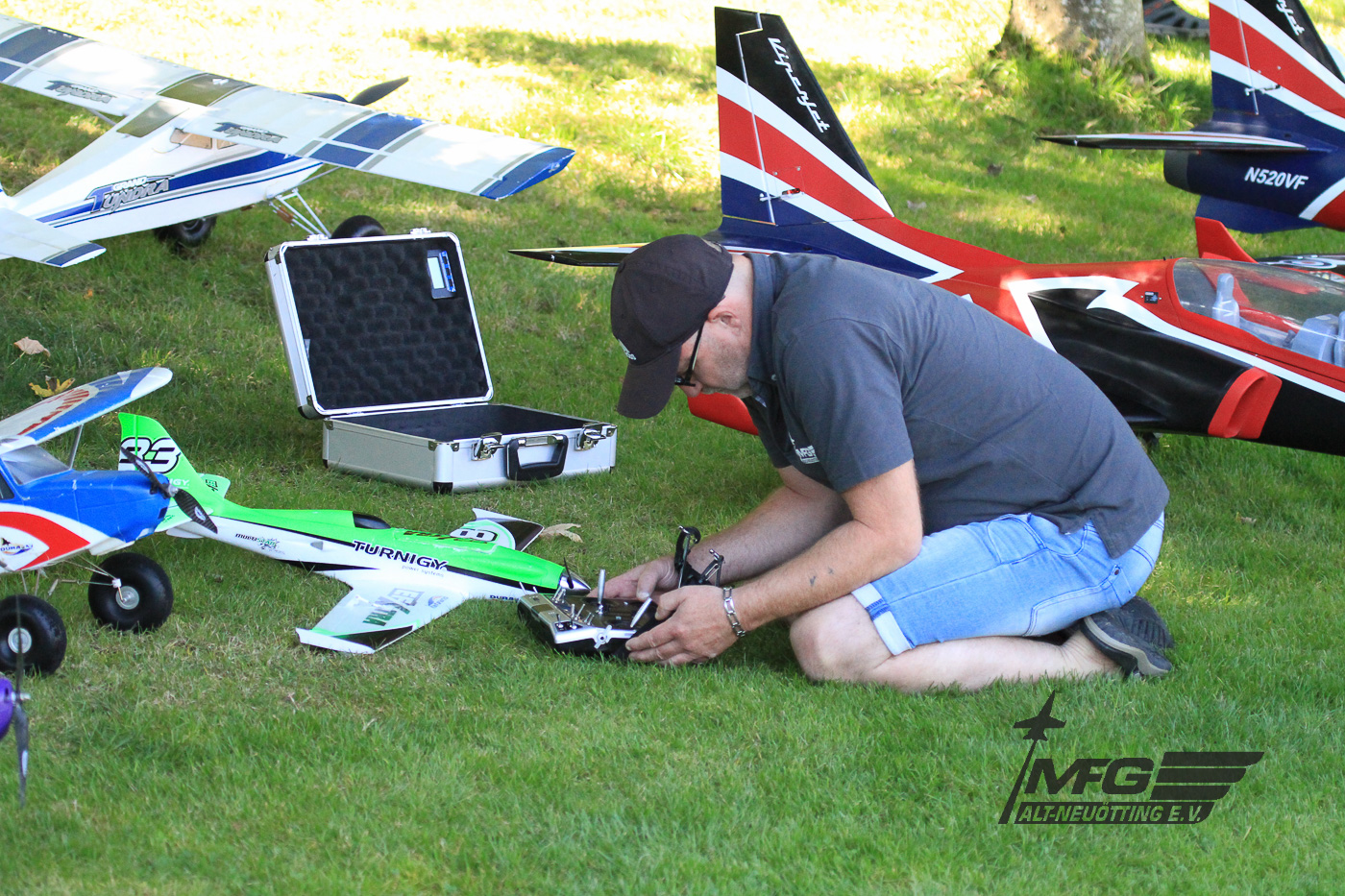 Anreise am Freitag und die gewohnt herzliche Begrüßung. Nur die Wiese war uns WoMo-Fahrern nicht so wohl gesonnen. Besagte Wiese wollte zwei von uns einfach nicht mehr loslassen. Mit Radlader und Abschleppkette ging es dann wieder zurück auf festen Boden. Egal, der Willkommenstrunk war vorhanden und wurde ausgiebig verkostet. Immerhin kamen 3 WoMo´s und drei WoWa`s zusammen neben all den vielen Tagesbesuchern aus der MFG.