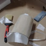 Alles muss mit 49g/m² Glasfaser und Epoxid-Harz beglast werden. Ich habe mich dazu entschieden das Ganze in der Garage am Boden zu machen. (Ach mein Rücken...)