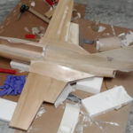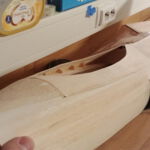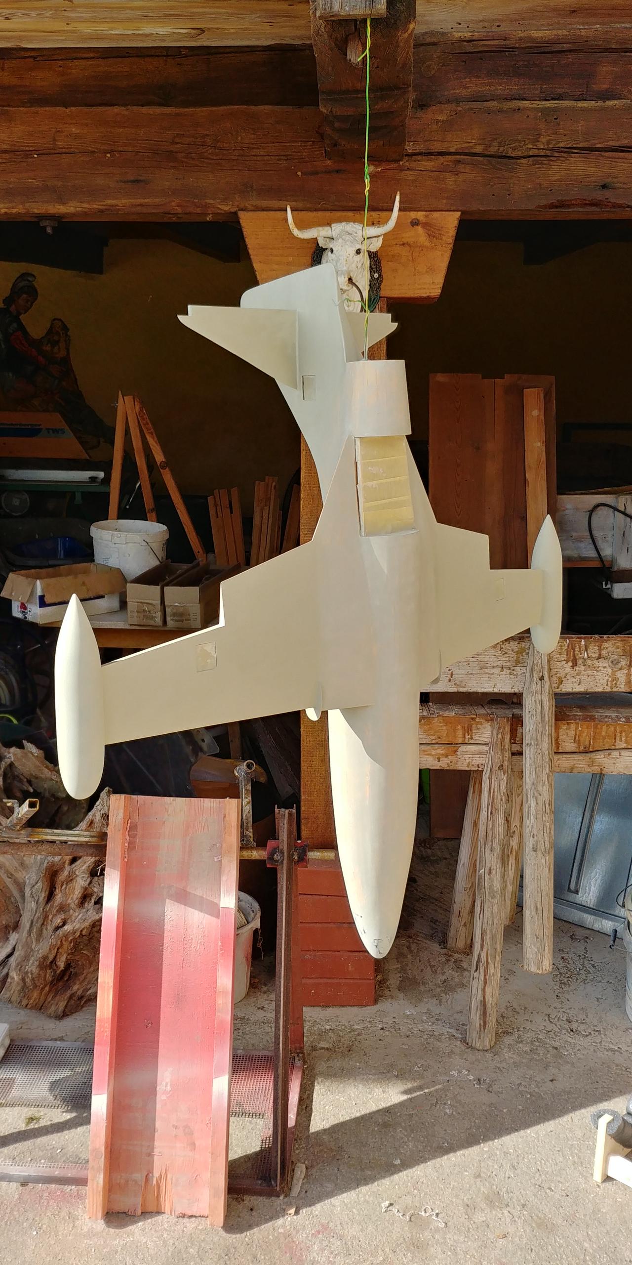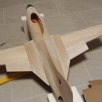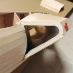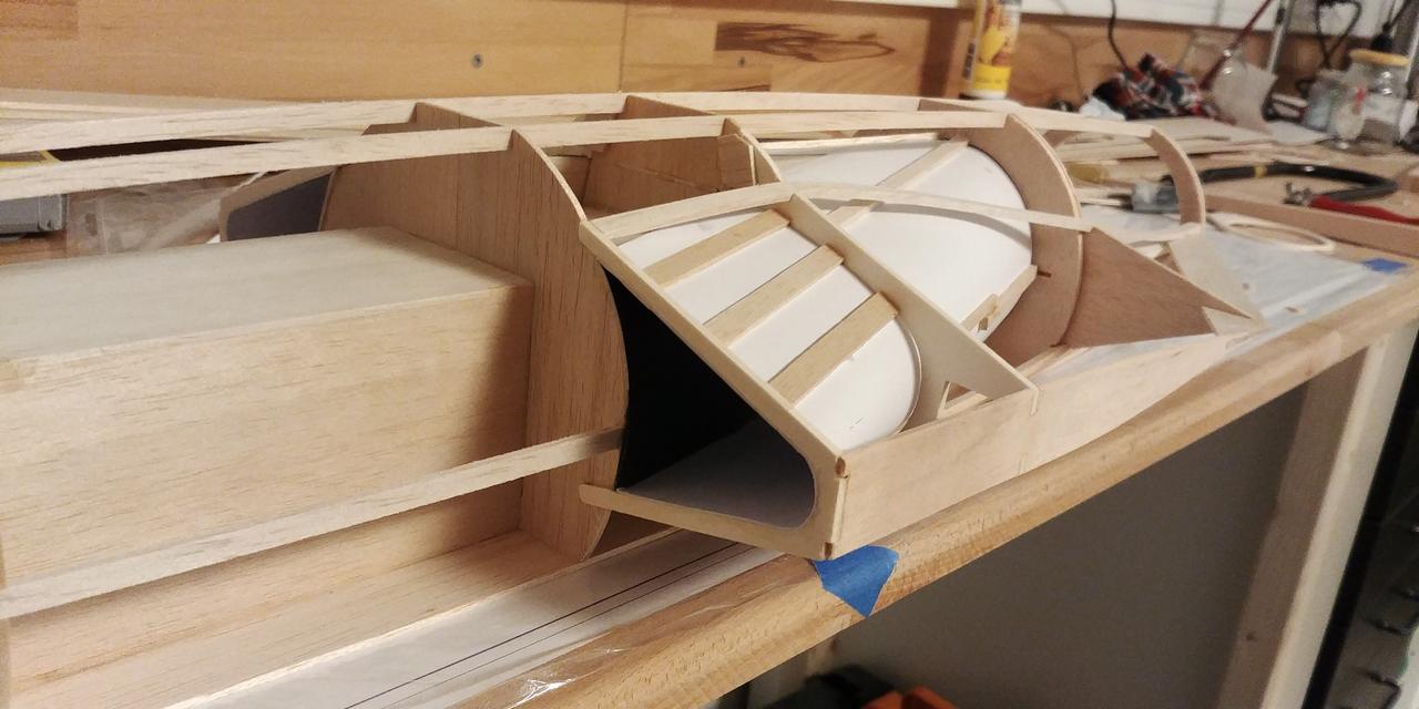 Der Rumpf an sich ist ziemlich Straight-Forward aufgebaut Spannten und Holme sowie Innenausbau (RC-Einbauten). Einzig der Impeller-Einlass war ein wenig aufwändiger. Dieser beseht aus Karton. Damit dieser ein wenig Wasserfest wird, habe ich den Karton mit Kerzenwachs eingerieben und geföhnt. Auf der Außenseite wurde der Einlass mit Balsa-Holz verstärkt. Ich denke das Ergebnis kann sich sehen lassen.