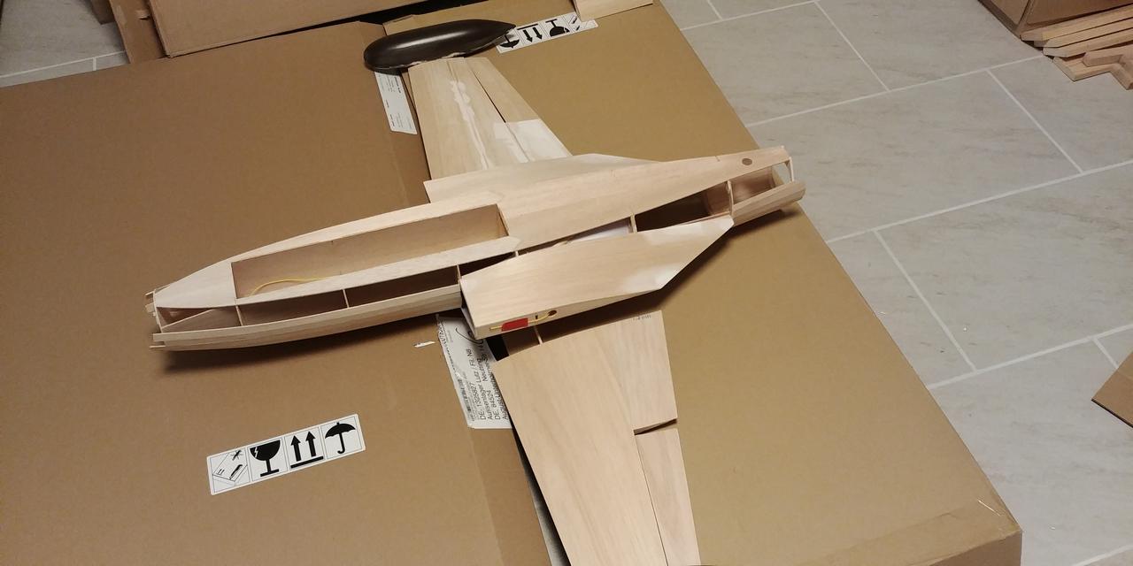 Da die Tragflächen nicht gesteckt, sondern verklebt werden, sollte beim ankleben ein wenig aufgepasst werden.