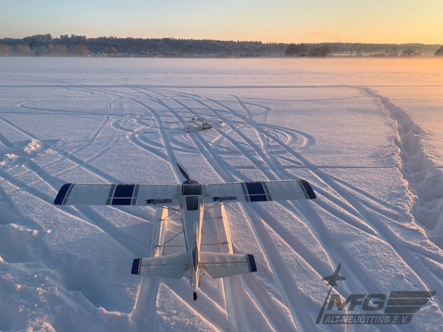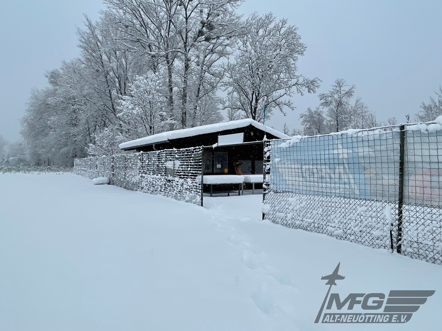 Welch ein Wochenende! Der angekündigte Schnee kam deutlich heftiger als erwartet. Einen Modellflieger kann das aber nicht wirklich aufhalten. Der härteste Kern war bei dichtem Schneetreiben am Platz und FLOG. Günther konnte seine Tundra auch bei dichtem Schneegestöber sicher in der Luft halten und auch sicher landen. Nur die Heimfahrt gestaltete etwas schwieriger. An der Zufahrt von der alten B20 neigte sich ein Baum komplett über die Fahrbahn. Der alternative Weg ging über offizielle Straßen durch Jaubing.