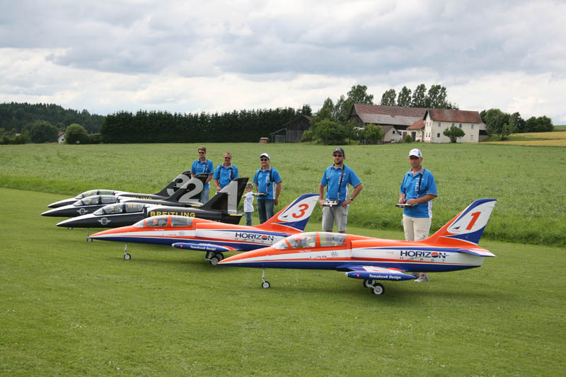 Horizon Hobby war mit 5 Maschinen des Typs Albatros auf dem Platz. Mit ihrem Kunstflugprogramm begeisterten sie nicht nur das Publikum auch die Piloten waren voll des Lobes. Eine einmalige Flugschau mit viel Einlagen und präzisen Manövern vom Start bis zur Landung. Kurze Aufschreie waren aus dem Publikum bei der Darbietung unserer Wonderstaffel bei der Todesspirale waren zu hören. Doch alle hatten das richtige Zeitgefühl und zogen zur richtigen Zeit.