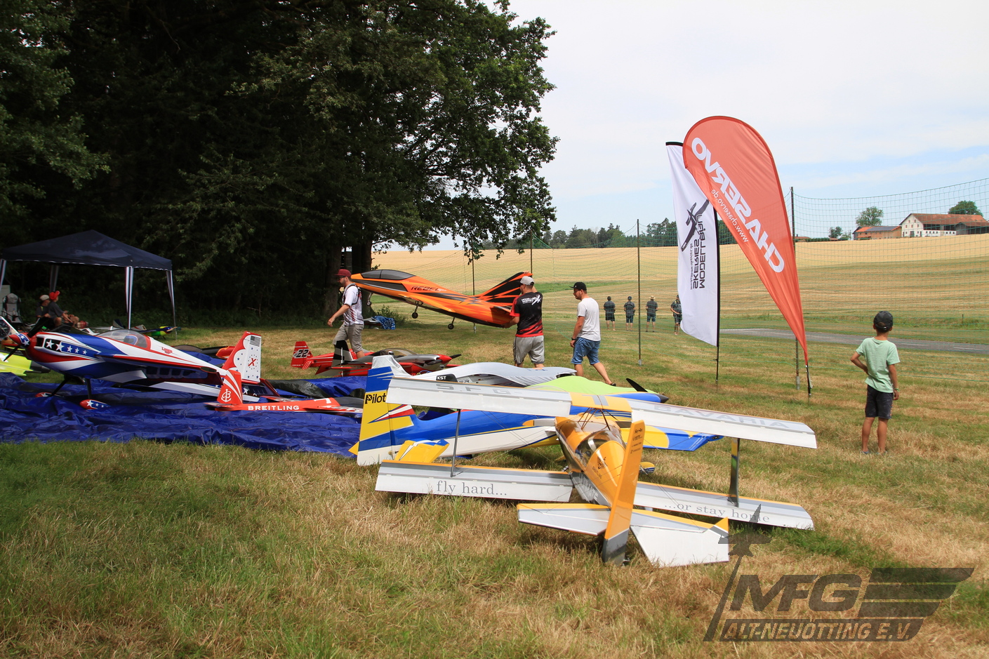 Der Samstag wurde von den fast 100 Piloten aus verschiedenen Ländern reichlich genutzt. Leider auch dazu das eine oder andere Modell nicht mehr einsatzfähig für den Flugtag zu halten.