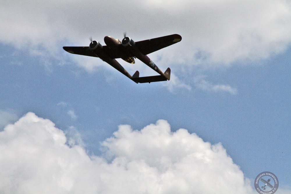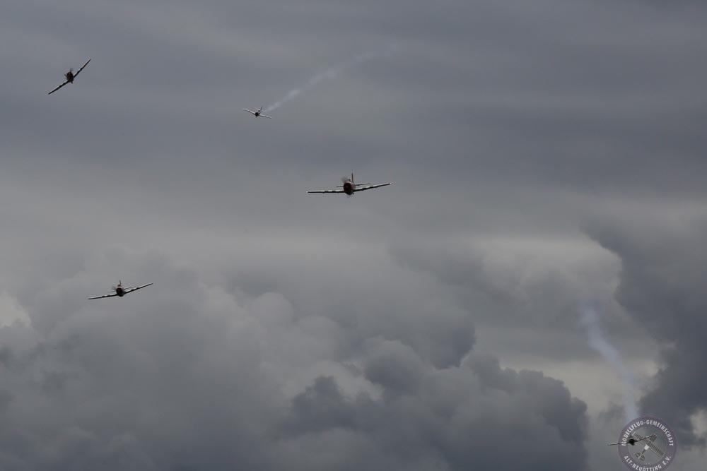Weit stärker wurde die P 47 - Staffel gebeutelt. Bei heftigem Seitenwind war die Landung entsprechend schwierig und mit Verlusten gespickt. Beim zweiten Staffelflug konnten die Piloten dann aber ausgiebig ihr Können zeigen. Tiefe Überflüge im engen Verbund und das mit Rauchanlage waren dem zahlreichen Publikum viel Applaus wert.