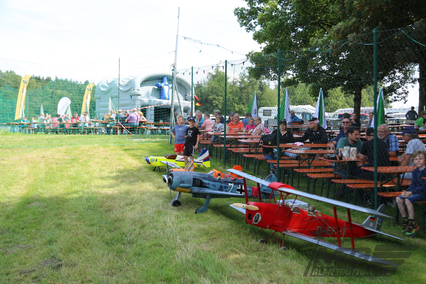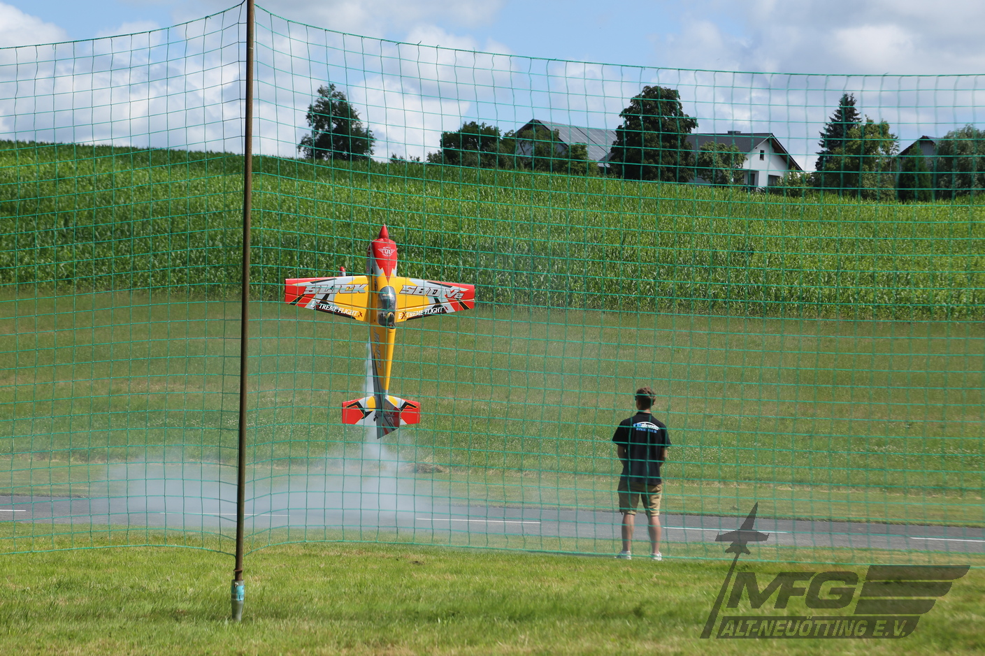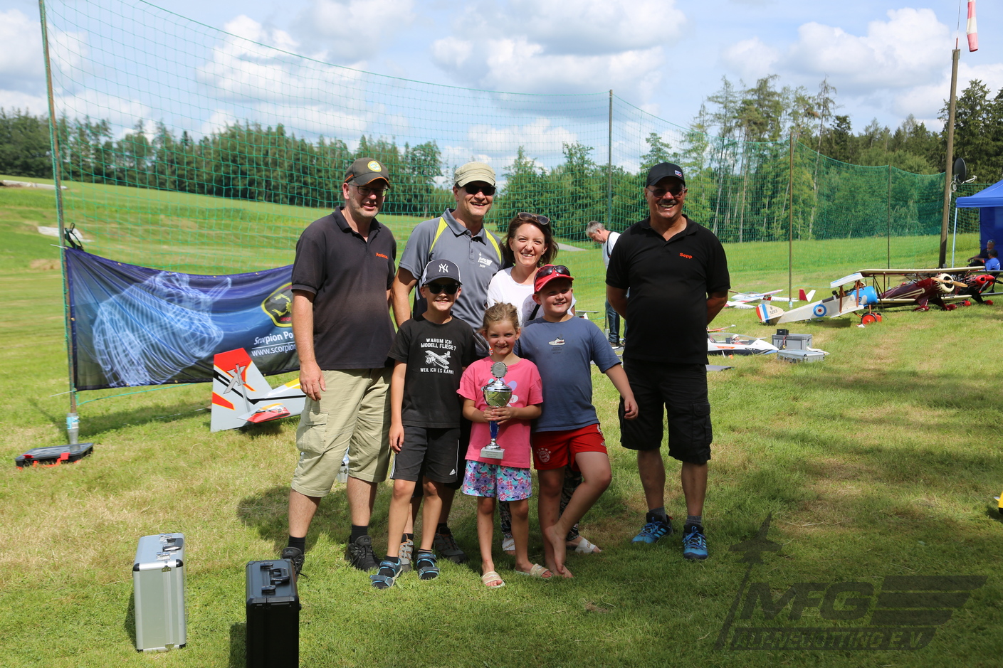 In diesem Jahr konnte Leni mit ihrem Bruder Michi Kammergruber den Parkour eröffnen. Die beiden flogen im Lehr/Schüler/Mode, wobei der Bruder der Lehrer war. In bunter Reihenfolge präsentierten die Piloten anschließend ihre Modelle. Vom jetgetiebenen Fighter zum verrückt erscheinenden Motorkunstflug bis hin zu den Warbirds über historische Segler, alles was der Modellflug zu bieten hat war vertreten und wurde auch vorgeführt.