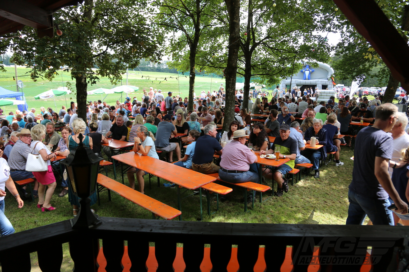 Erste der spät einsetzende Regen vertrieb einige Gäste, die Mehrzahl suchte in der Waldbar Zuflucht.