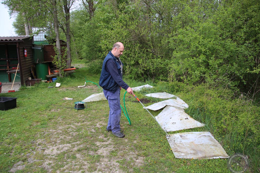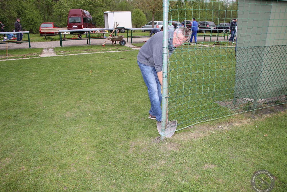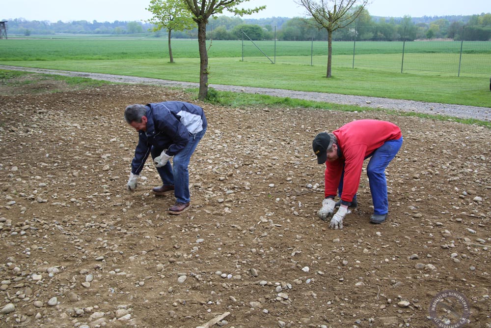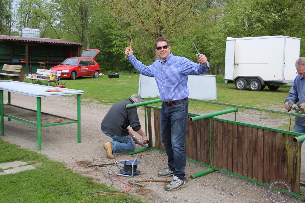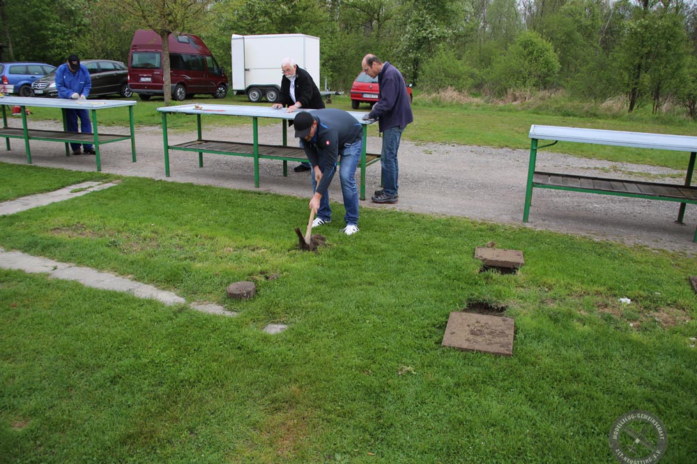 Ein Teil beschäftigte sich mit der neu angelegten Ausgleichsfläche um den Steinacker von den Steinen zu befreien. Eine andere Gruppe widmete sich den Vorbereitungstischen um diese wieder auf Hochglanz zu bringen. Die Standplätze für die Tische wurden mit festen Auflagepunkten versehen.