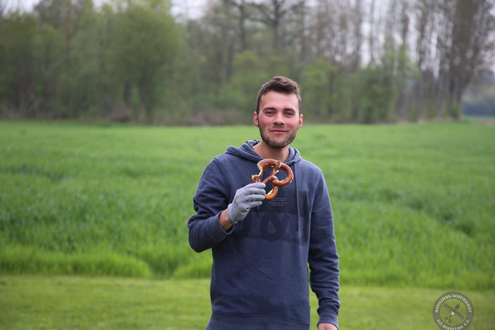 Somit hatte sich die Truppe gegen 12:00 Uhr wirklich die Brotzeit verdient, die auch restlos angenommen wurde. Einige Regentropfen trübten am Schluss keinesfalls die Stimmung. Alle geplanten Arbeiten waren durchgeführt und auch die verteilten Farben waren zu dem Zeitpunkt bereits so weit getrocknet, dass dies nicht mehr ins Gewicht viel.