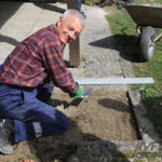 Fleißig wurden Platten zwischen den beiden Containern neu verlegt und das so gerade, dass wirklich keiner mehr stolpern kann. Die Absenkung im Bereich der Ladestation wurde neu verdichtet und auch hier eine ebene Fläche zum Zugang erreicht. Die Dachrinne an der Ladestation wurde neu verlegt und gleichzeitig die Rinne aus der Dachentwässerung des Containers mit eingebunden (mit handwerklichem Können und akademischer Unterstützung).
