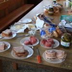 Eine gewaltige Aufgabe hatte das Hüttenteam. Alles wurde aus der Küche geräumt, gesichtet und teilweise entsorgt. Neue Kisten zur Aufbewahrung beschafft und geordnet und in neuen Regalen abgelegt. Das Fensterputzer-Duo hatte reichlich zu tun. Mit Spachtel mussten die Überreste von Insekten vom Fenster geschabt werden. Das Ergebnis lässt sich (nicht) sehen. Für mögliche Schäden durch Nichtbeachtung von Fenstern trägt jeder selbst!