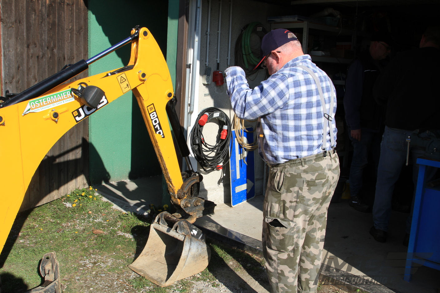 Das schon vielfach geflickte Begrenzungskabel für den Rasenroboter wurde entfernt und durch ein neues, stärkeres Kabel ersetzt. Mit einer selbst erarbeiteten Kabellegevorrichtung konnte das neue Kabel eingearbeitet werden. In stundenlanger Tüftelarbeit hat Richard seine Vorrichtung letztlich an den Traktor montiert. Super!