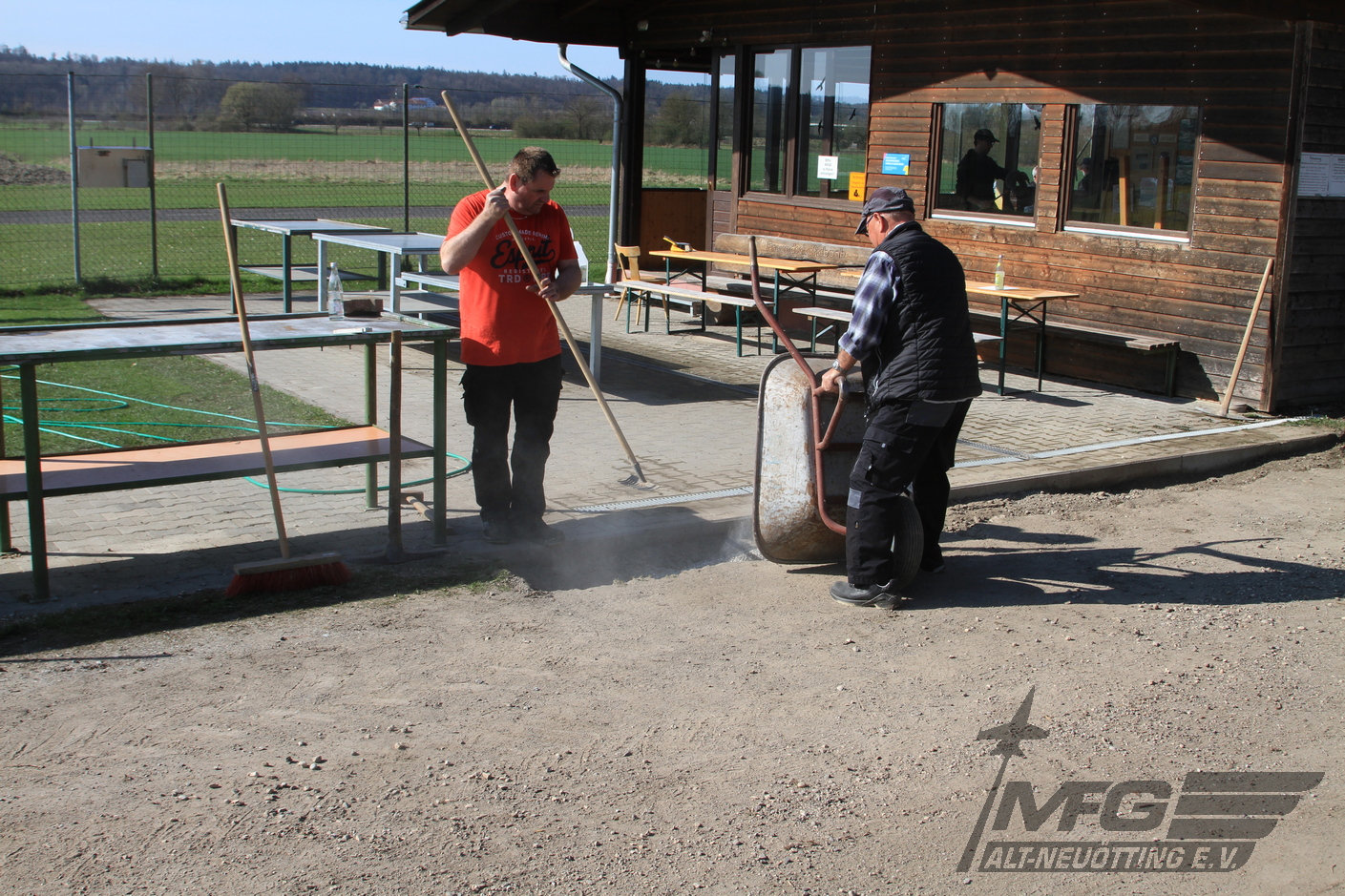 Im Pilotenraum wurde ein Fundament für einen Sonnenschirm ausgehoben. Er wird Piloten und Modelle in Zukunft beschatten.