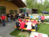 Was ist aber eine Jubiläumsveranstaltung ohne den entsprechenden Rahmen. Die Arnstorfer Freunde brachten reich garnierte Brotzeitplatten und ein gut gekühltes Fass Bier mit. Den Luftraum über unserem Platz stellten wir dann zur freien Verfügung. Helmut hatte die Ehre das Fass anzustechen. Wie auf den Bildern zu sehen, war der Druck im Fass recht mächtig. Die Platten wurden schnell sauber geputzt, beim Bier wurden alle Reserven eingesetzt um die Luft auf den Fassboden zu bringen. Der Lohn für diese reichliche Arbeit war mit leichtem Druck an den Schläfen am darauffolgendem Tag zu spüren.