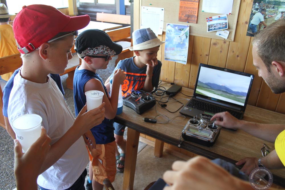Bereits am Vormittag waren die ersten aktiven Modellpiloten auf dem Platz um Ihre Modelle aufzubauen und den Kindern den Spaß und die Freude unseres Sportes zu übermitteln. Pünktlich erschienen dann auch die Kinder mit ihren Eltern. Nach einer kurzen Einweisung durch Michael Edhofer verabschiedeten sich die Eltern und die Kinder konnten ausgiebig am Flugsimulator einen Absturz nach dem Anderen fabrizieren. Mit Reset ist am Computer alles so einfach.