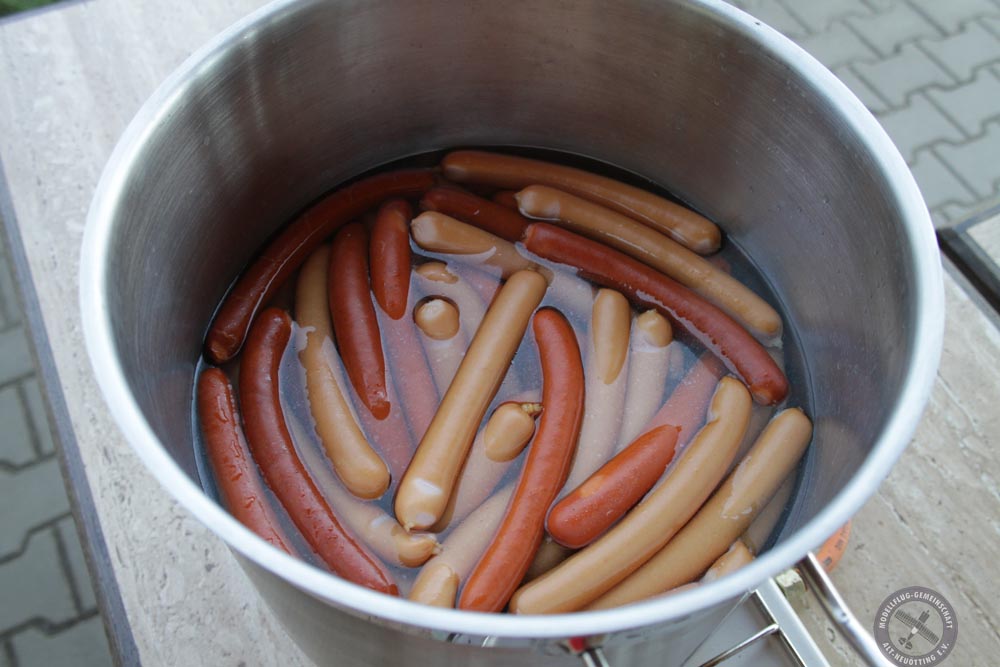 Um die verbrauchte Energie wieder aufzufüllen war die kleine Brotzeit mit heißen Würstel mit Semmel und Senf und/oder Ketschup eine willkommene Gabe. Gut gesättigt wurde weiter geflogen und gespielt.