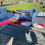 Weniger gut verlief der gemeinschaftliche Flug von Peter Lerch und Toni. Mit vollem Schwung rasierte der „Kampfsegler“ das Leitwerk der kleinen SebArt ab. Ohne Seitenleitwerk, das hatte Toni in seiner Fläche, konnte Peters Modell noch gut auf dem Platz landen. Toni mache einen Ausflug in die Prärie.
