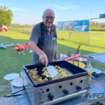 Manchmal sind es die glücklichen Zufälle, die zu einem schönen Ganzen führen. Die Wettervorhersage war phantastisch zu einem Treffen. Ein unerwartetes Packet von unseren Golser Freunden erreichte uns just für dieses Wochenende. Ein spanender Erstflug stand an und ein Hoppala ergab sich. Zudem gab es eine prima „Resteverwertung“! Übriger Leberkäse vom Treffen, in Scheiben geschnitten und auf dem Grill gebraten mit frischen Kartoffelwürfel aus der Pfanne.
