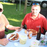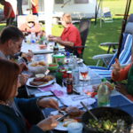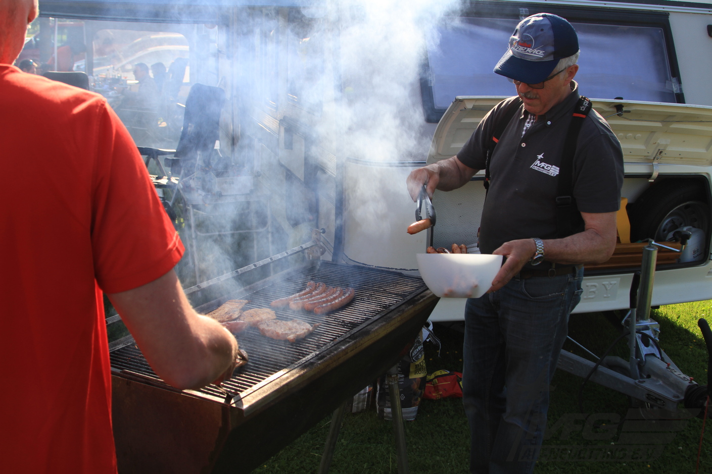 Neben dem Fliegen war der gesellige Teil gepflegt worden. Bei köstlichem Grillfleisch, Würstln und gegrilltem Gemüse, dem einem oder anderem Bier und gekühltem Wein konnte der Abend gar nicht lang genug sein. Eine besondere Köstlichkeit konnten wir von unserem Fliegerfreund aus Mücke genießen. Gegrillte Kartoffelwürste, einfach Spitze!