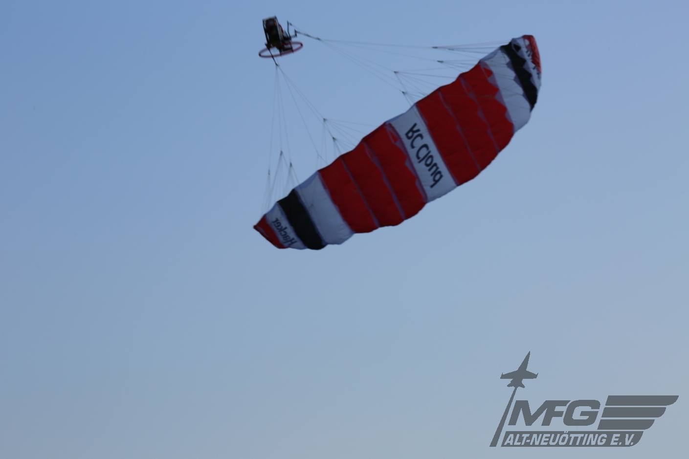 Waren es die Vorführungen des extremen Paragliders, welcher uns auch Nachts sein unbeschreibliches Spektakel bot, oder überzeugten die Gäste vom Verein Red Baron. Die beiden kamen mit einem Grunau Baby mit 6 (sechs) Metern Spannweite. Ein wirklich gewaltiges Teil mit knapp 20 kg Gewicht. Souverän geschleppt von einem Fiseler Storch mit gewaltigem Sternmotor.
