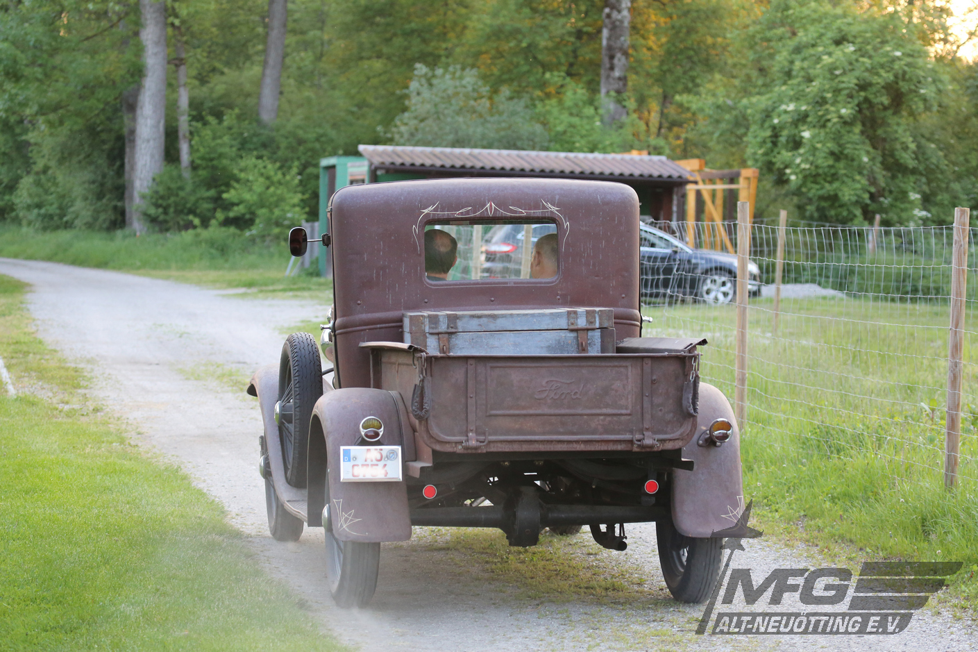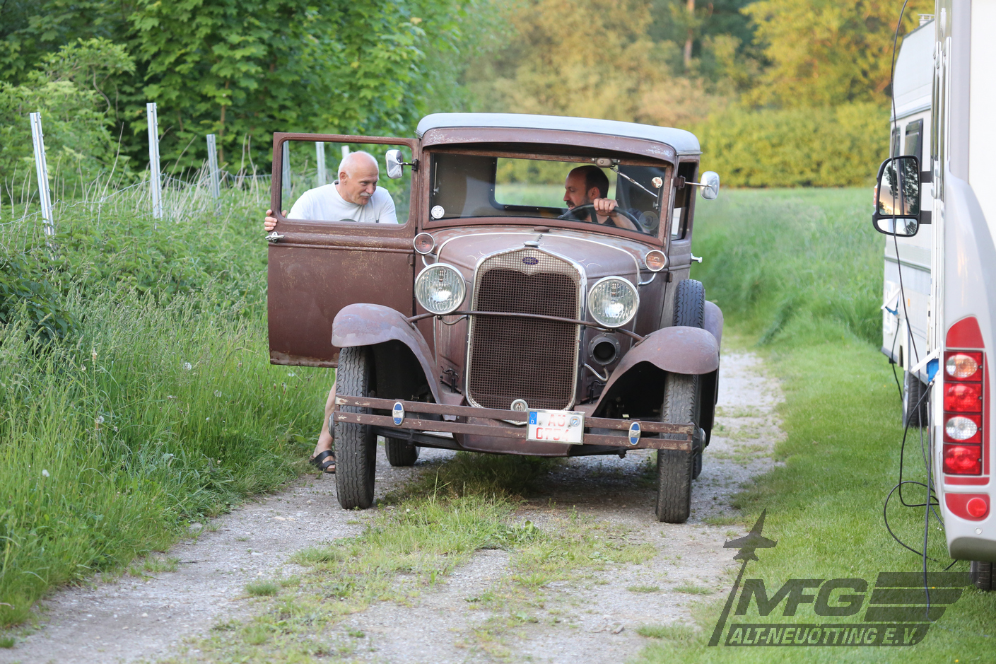 Ebenso überraschend tauchte ein absoluter Oldtimer am Platz auf. Gemeint ist natürlich der Ford und nicht die beiden Insassen!