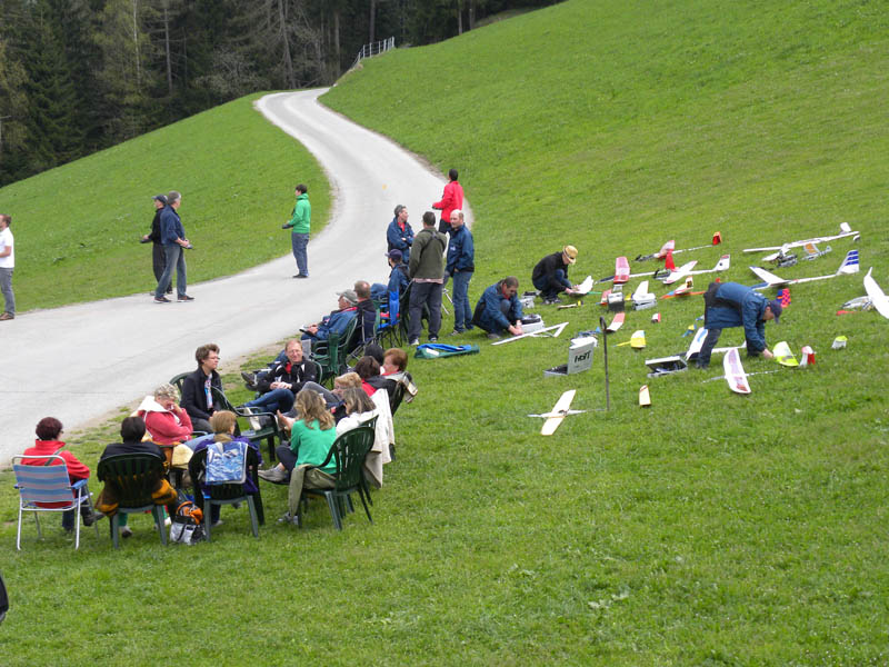 Im Hotel Tannenalm alle Zimmer belegt, Nebenhäuser mit MFG´lern besetzt und somit mit insgesamt 41 Hangflugbegeistern mit ihren Angehörigen anwesend. Der Hang neben der Tannenalm gehörte an diesem Wochenende wieder einmal den MFG´lern. Bei wunderbarem Wetter genossen die Teilnehmer das Wochenende. Ein kleiner Rekord, heuer mit recht wenig Bruch. Pech hatten nur Sepp und Helmut mit ihren Seglern. In ca. 300 Metern Höhe stießen die beiden Modelle beim Auskreisen der Thermik zusammen. Helmut konnte mit einer beschädigten Fläche noch landen, bei Sepp hingegen brach die Fläche und der Absturz war nicht mehr aufzuhalten.