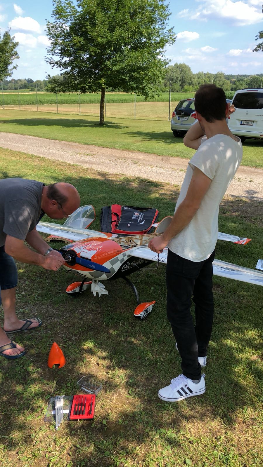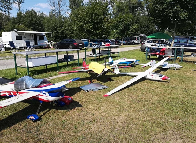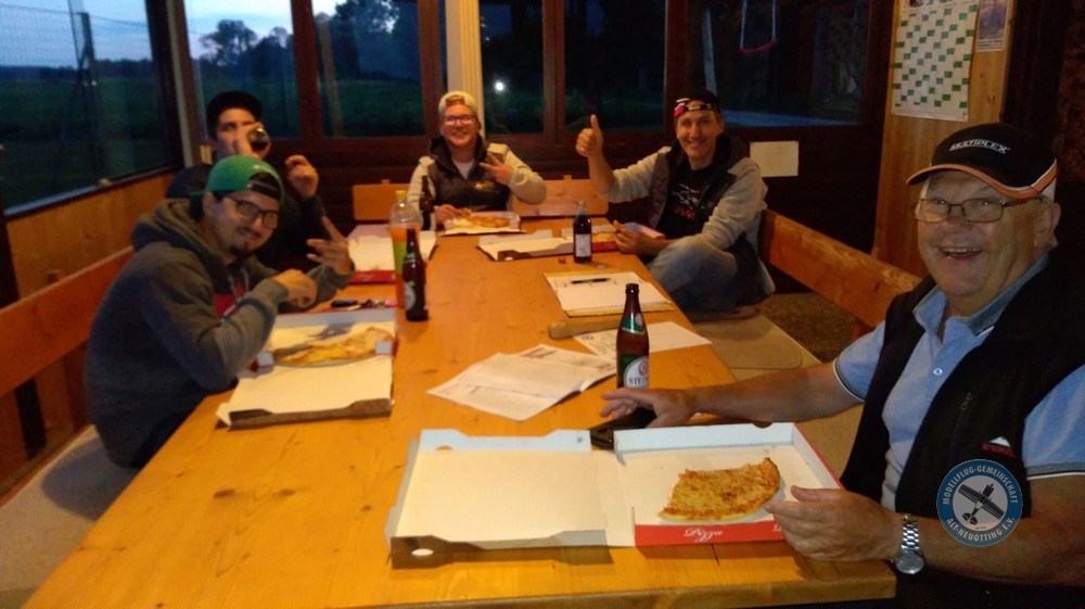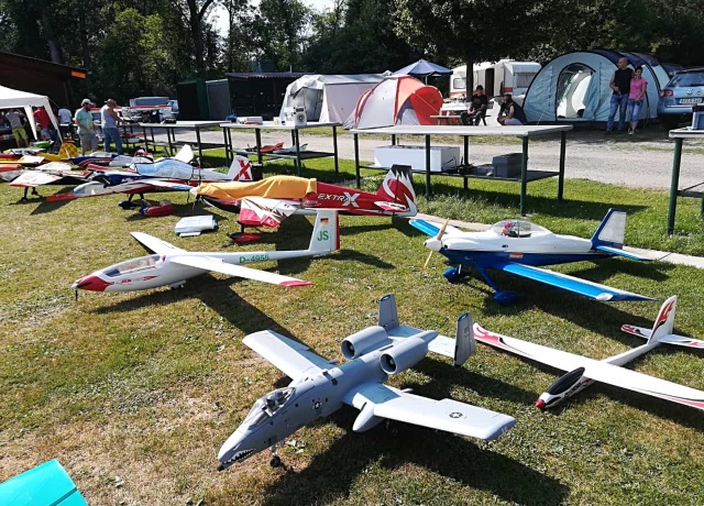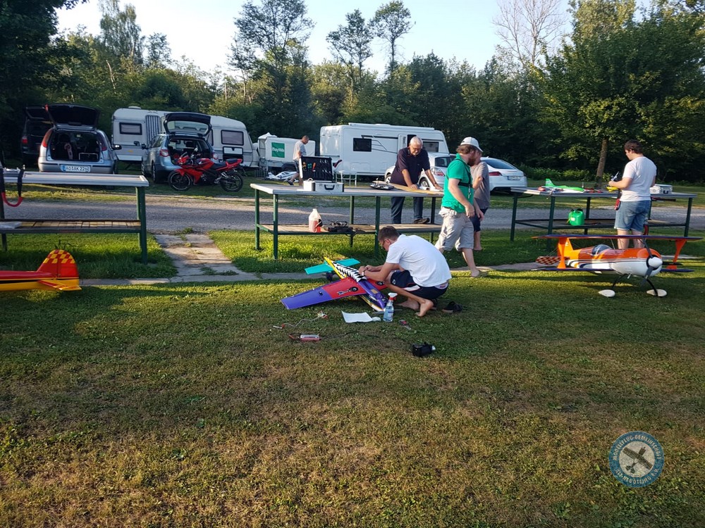 Die Begrüßung erfolgte von den bereits früh auf dem Platz anwesenden Campern. Mit großem Hallo wurden die Modelle aufgebaut und die ersten Platzrunden konnten gedreht werden. Im laufe des späten Nachmittags füllten sich die Reihen und zum Abend konnte dann auch das eine oder andere Bier verkostet werden.