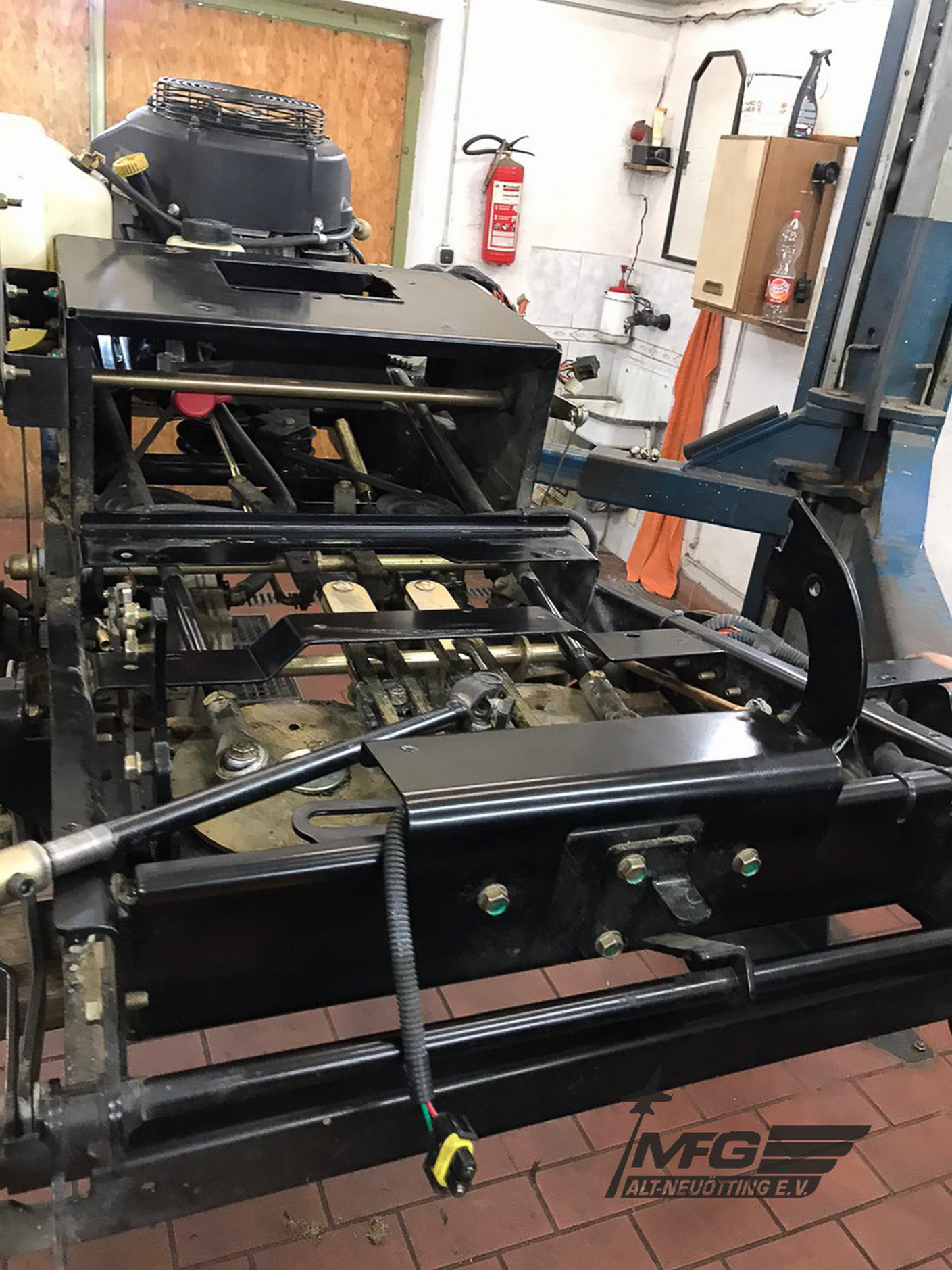 Nach unendlich vielen Stunden konnten Werner und Charly nun wieder zum Komplettieren kommen. Alle Einzelteile wurden wieder verbaut und am Schluss erstrahlt unser Mähtraktor wieder im vollen Glanz, zumindest was die Technik angeht.