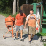 Bei so viel Einsatz und Manpower ging es auch an die Überreste von Schaukel und Sandkasten. Die Sandgrube wurde mit Humus verfüllt, die Reste der Schaukel aus dem Boden gezogen und der kaum benutzte „Stopschild-Tisch“ fiel beim Anblick von schwerem Gerät von alleine um.