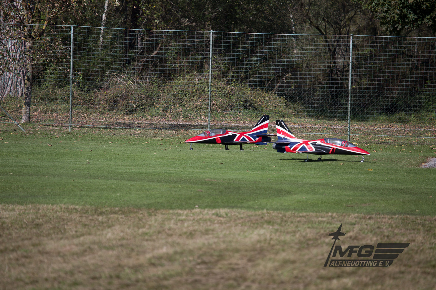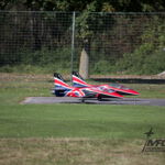 Helmut brachte seine im gleichen Design gebaute Viper ebenfalls in Stellung. Die beiden Piloten, seit Jahren in der P 47 Staffel, sind es gewohnt gemeinsam zu fliegen. Also nichts wie ran. Mit wirklich spektakulärem Staffelflug zogen sie über unser Flugfeld. Auch wenn der Name des Modells, Viperjet, böses erahnen lässt, so friedlich sind die Schlangen zu fliegen.