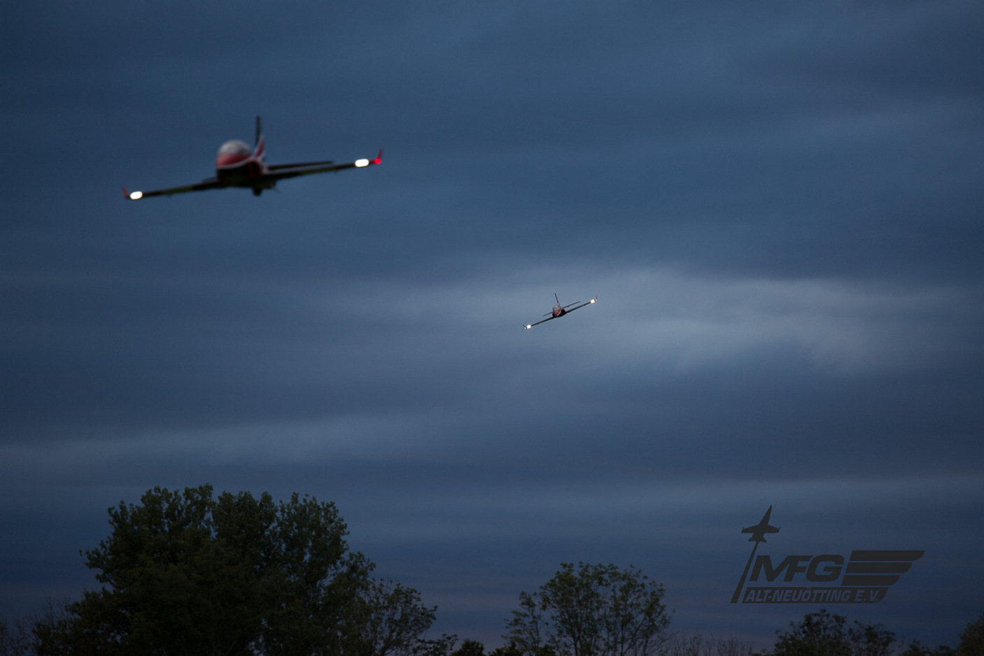 Bis spät in die Dämmerung zogen Helmut und Charly ihre Kreise, ein Genuss auch für den Betrachter. Die leisen EDF-Antriebe tuen ein übriges dazu, dass alles sehr elegant und leicht beschwinglich aussieht.