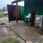 Schlechter hätte das Wetter kaum sein können. Bei Temperaturen deutlich unter 10 Grad und einem Dauerregen konnten Richard Edhofer und Günter Mittermeier den erweiterten Toilettenbereich mit Waschbetonplatten belegen.