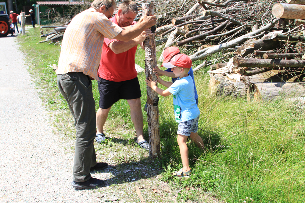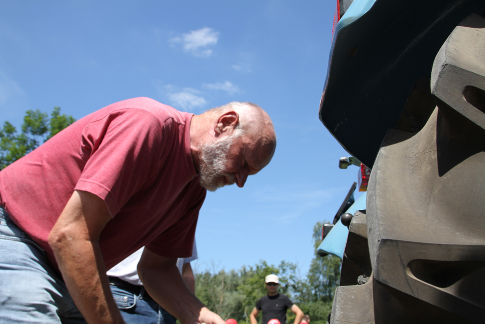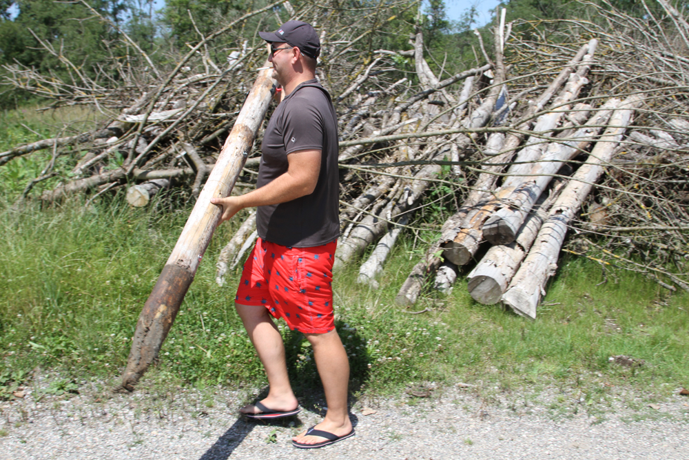 Ohne die Hilfe des Eicher Tigers von und mit Sigi wäre die Aufgabe des Pfostenziehens nicht möglich gewesen. Auch wenn es den Eindruck erweckt, Sigis Bulldog hat auch einen Rückwärtsgang!
